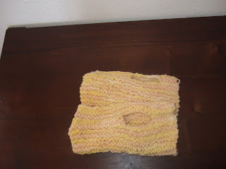 Para combater o frio que se tem feito sentir por aqui utilizei uma meada que fiaste já há muito tempo e que eu tingi com pacotes de sumo tang. O modelo é bastante simples, encontrei-o na net. Basta fazer um rectângulo, coser as pontas deixando no meio um espaço aberto para sair o polegar.