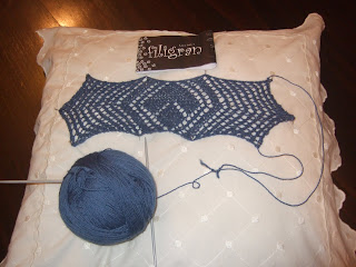 O Desafio que está agora a “fermentar” é para uma meada de filigran azul (de Zitron), lindíssima, macia. Vamos ver que volta lhe damos…